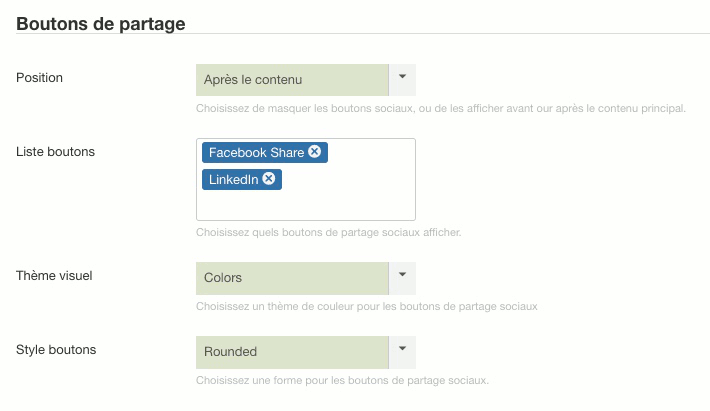 Réglage des boutons de partage dans JAmp